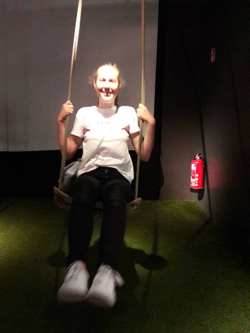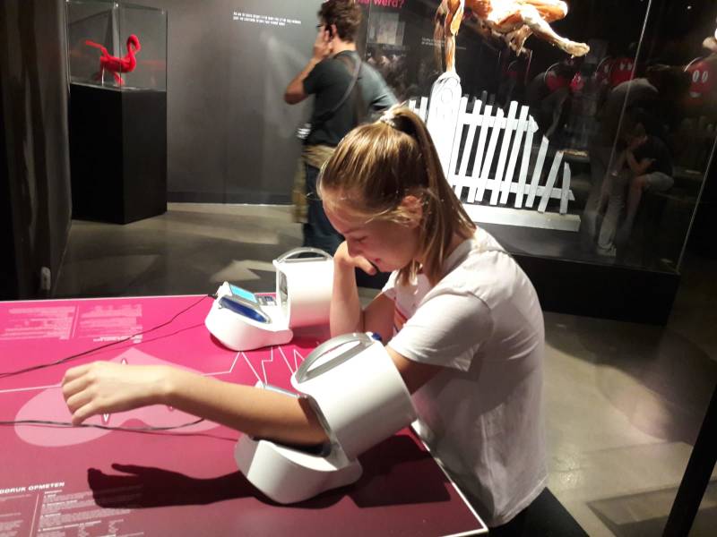 Ook kan je ook sommige dingen doen. Namelijk schommel, want er wat een vrouw opgezet aan het schommelen en daar stond informatie bij, en dan kon je zelf dingen ontdekken door zelf te schommelen. Ook kon je bloedruk meten en je hartslag. En dat kon je aflezen en kon je kijken hoe jou bloedruk wad opdat moment. Er was ook een monitor als je daar ging staan voor en steeds een stapje naar voren zetten kon je steeds een andere gedeelte dieper in je lichaam bekijken. Ook kon je een gaan fietsen en dan een schermpje voor je hoe gezond fietsen ook was. En als laatste kon je een kaartje schrijven met verschillende thema's en daar stond een opdracht over en daarna kon je een ander kaartje trekken waar een opdracht opstond en als die dan ging uitvoeren zou je een stuk gelukkiger voelen.