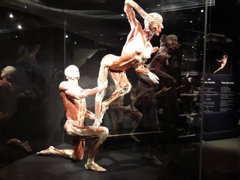 Het is heel bijzonder om te zien hoe alles is opgezet, want je loopt lang organen en mensen die opgezet zijn en toch heb je als je er loopt niet echt een idee hebt dat deze mensen hebben geleefd. toch als je het weet dat deze mensen echt geleefd hebben ga je toch er anders ernaar kijken. sommige onderdelen in de tentoonstelling lijken dan ook wel van plastic dan echt mensen weefsel. dat komt doordat het weefsel in een special spul in gedaan, zodat het niet verteerd en mooi blijft.